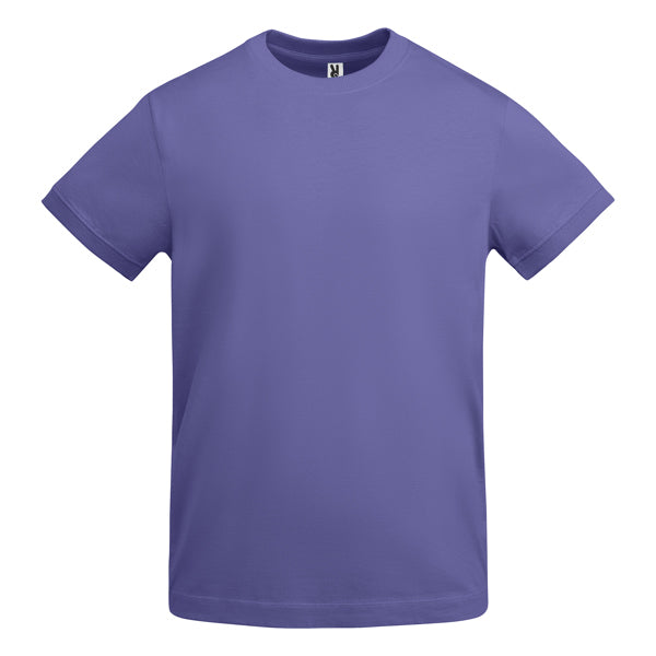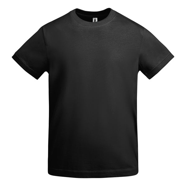 Camiseta gruesa de hombre en manga corta de algodón . Cuello redondo y ribete mangas en canalé ancho 2x1. Cubrecosturas reforzado en cuello. Costuras laterales. Logo Roly a tono en bajo lateral izquierdo. Costura ancha en el bajo.